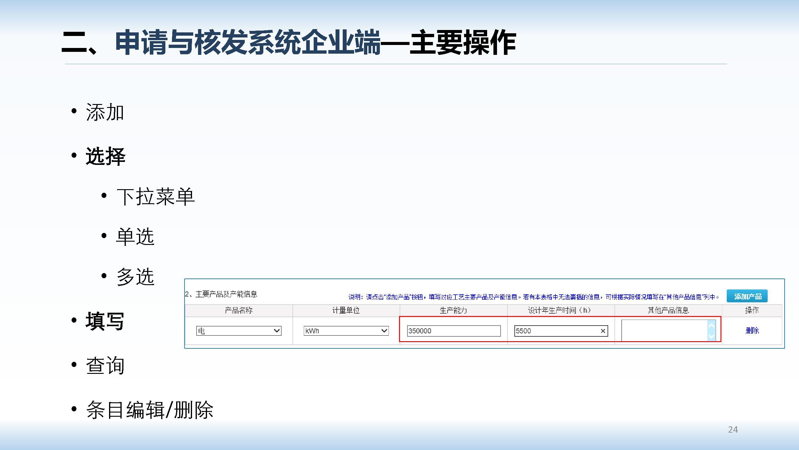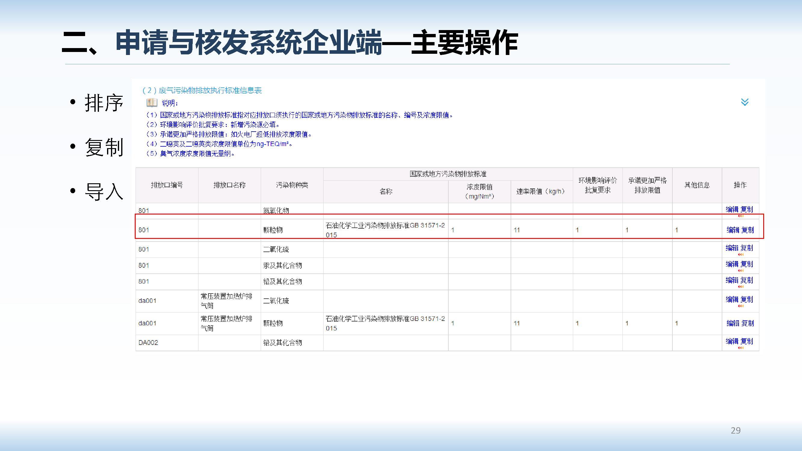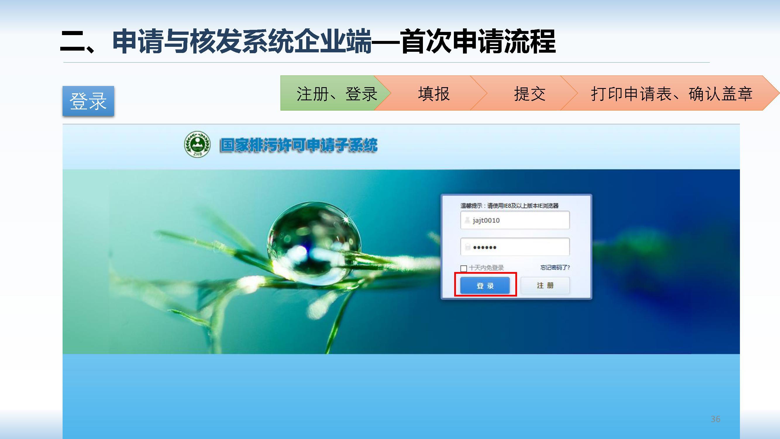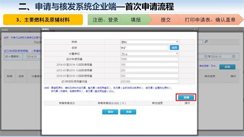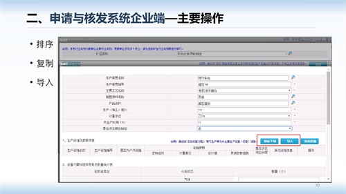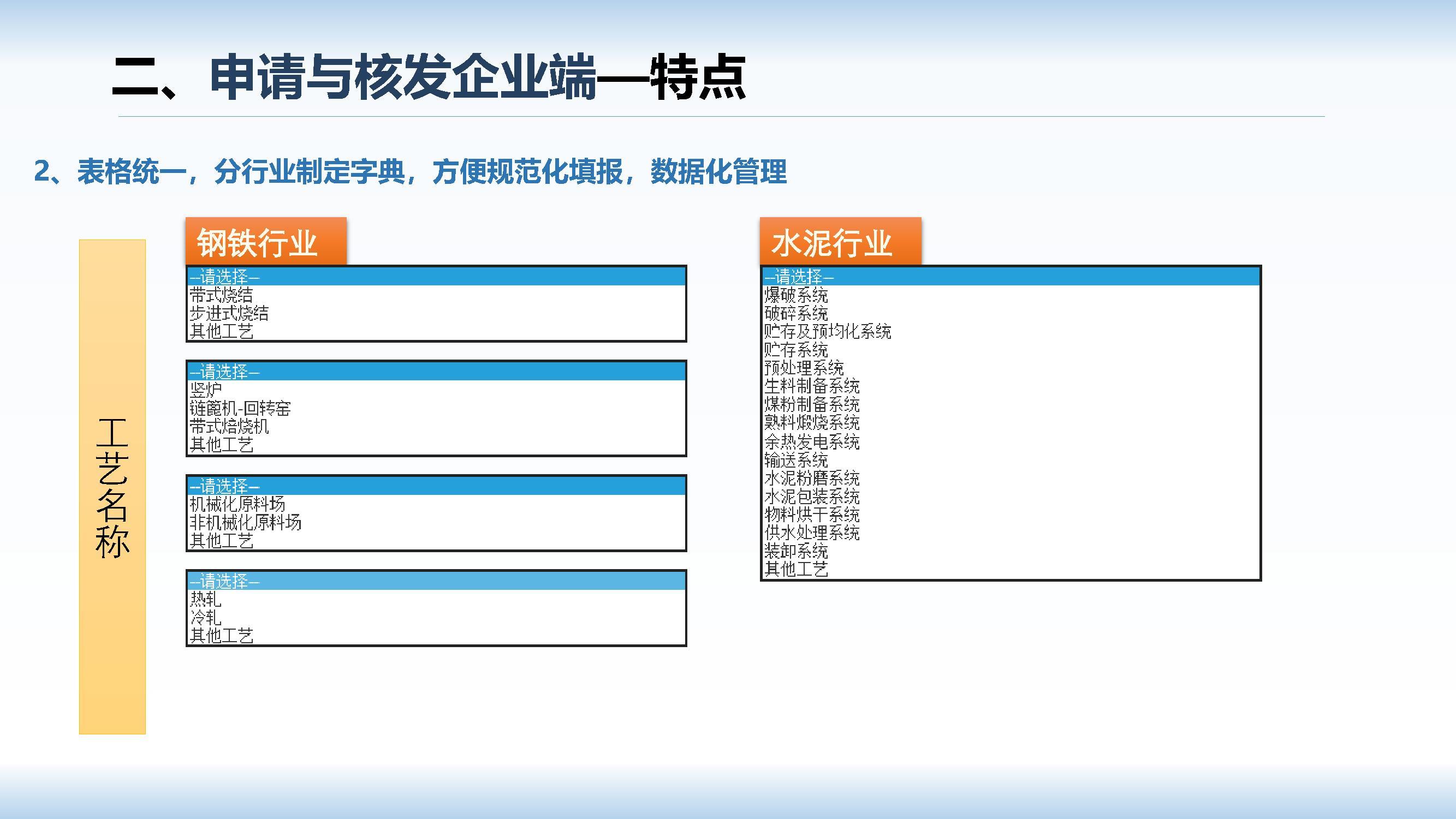 其次,介绍了企业端的一些特点。包括企业端的基本操作、申请流程等。考虑到企业大多数均是首次在全国排污许可证管理系统中申请,所以多数申请为首次申请。 填报包括排污单位基本情况、主要产品及产能、排污节点集污染治理设施、排放口等等十几项子填报项目。