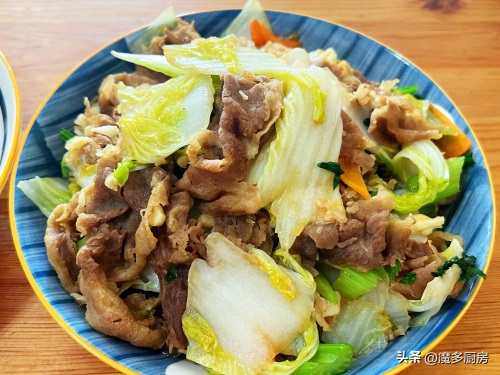 娃娃菜炒牛肉,用的是牛肉卷,平时家里冰箱里常备羊肉卷、牛肉卷这样的食材,可以涮火锅,也可以用来炒菜或者煮汤面,能够节省很多时间,口味又不错。