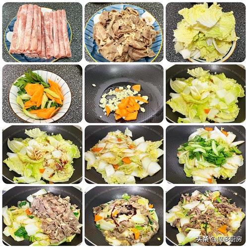 做法分享:1、牛肉卷放到开水锅里焯熟后捞出备用;娃娃菜和胡萝卜、芹菜分别清洗处理切成片或小段备用;