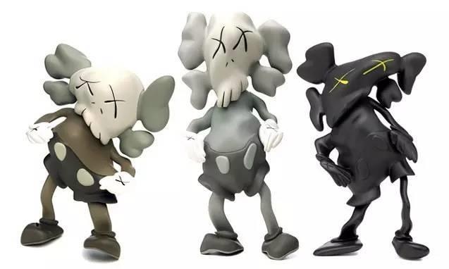 当时KAWS联合Bounty Hunter的主理人岩永光打造了下图的三款不同配色的玩偶,每个配色限量发售500个。之后便一发不可收拾,发展出各种各样不同版本的玩偶,且都价值不菲及数量稀少难以购买。