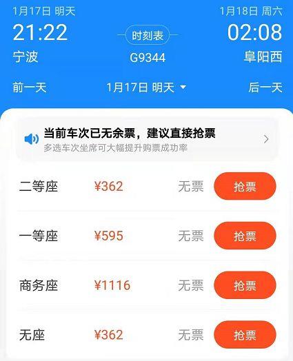 二等座362元