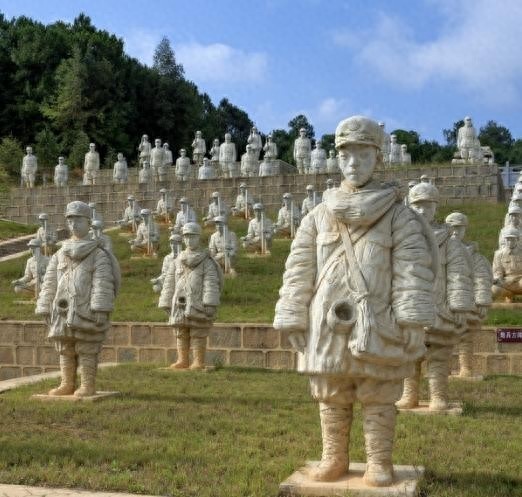 后来为了纪念这场战役牺牲的远征军们,松山建立了纪念战斗遗址。在那片遗址内有着中国远征军的雕塑群,这其中就有娃娃兵方阵,看着这些雕像仿佛就能看到那些孩子扛着枪冲锋陷阵的场景。