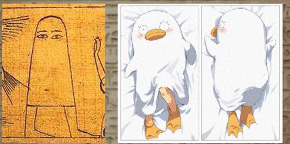 传说赛特将奥西里斯谋杀后肢解成14块抛尸野外,伊西丝复活他的时候只找到了13块,丢失的那一块正是奥西里斯的丁丁,因为被鱼吃掉了所以没有找到,于是伊西丝只能给他做了一个假丁丁,然后和他生下了荷鲁斯。据称后来被鱼吃掉的丁丁变成了梅杰德神( medjed )。但是这个像伊丽莎白一样的迷之生物究竟是个怎样的存在已经无从得知,关于他的现存记载只在亡灵书中简短的写到:我知道这个毁灭者的名字,它从属于奥西里斯。它能用眼睛射击,但是它却无法被看见。除此之外就再没有更多关于他的信息了。我们从这段铭文中得知他属于奥西里斯,而奥西里斯被鱼吃掉的丁丁也属于奥西里斯,所以从逻辑上来讲,梅杰德神很可能就是奥西里斯的丁丁。