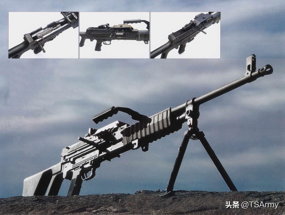 88式通用机枪,别名为QJY-88式,在上世纪八十年代末期研制,最后在九十年代末期定型。虽然它是一种通用机枪,但却发射5.8X42毫米步枪弹,采用弹链或者是弹药箱供弹,每分钟理论射速800~1000发,有效射程1000米。在战斗的时候可以使用三脚支架或者双脚支架,必要时也能安装在车辆上作为防御武器,机匣顶部也可以配备不同类型的光学瞄准镜。88式通用机枪的枪托、护木和握把,还采用了工程塑料结构,重量也要更轻,便于战士携带。虽然该枪很出名,但因为某种原因,未能被采用。