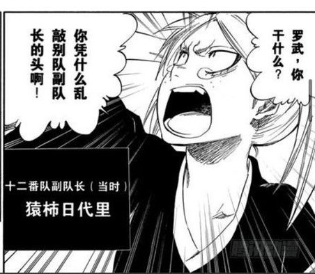 二、猿柿日世里。前十二番队副队长,十分尊敬原十二番队队长曳舟桐生,后来曳舟晋升为王属特务零番队,浦原喜助接替曳舟当上了新队长,猿柿日世里并不待见浦原喜助。猿柿日世里和拳西与白执行任务的现场勘查,但拳西遭受东仙要的背叛被其刺穿倒地,而日世里在调查中遭到虚化拳西的攻击,并被蓝染改造成为第三位触发虚化的死神。空座町大战结束后,日世里在卯之花烈的治疗下顺利康复,但因自身讨厌死神的缘故,而选择与其他假面成员继续留在现世,在千年血战篇中发现空间出现异常的裂缝,与夜一在发生过扭曲现象的地点搜集残留的能量。斩魄刀:馘大蛇,属于直接攻击型系斩魄刀。刀柄为呈椭圆形,护手上有类似桃心状的花纹 ,解放语:““斩断他,馘大蛇”。始解后刀身会变成一把刀刃端为一排整齐缺口的大刀,具体能力不详。