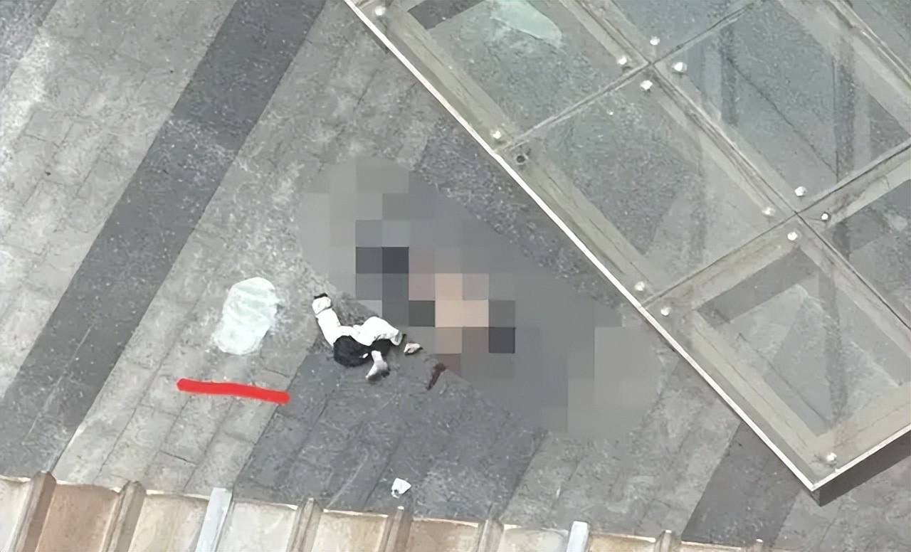 很快有网友发布了相关图片,解释了以上疑问。据发布图片的网友表示:女子从高空坠下的时候,身体撞到二楼的平台,女子身体撞碎了二楼平台玻璃,最后落在了地上。