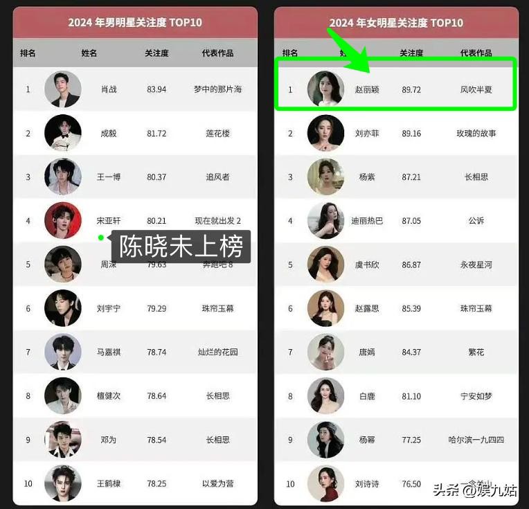 《2024中国剧集市场白皮书》显示:赵丽颖主演剧集平均招商额是陈晓的11.7倍。