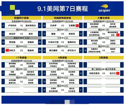 美网9月1日的整体赛程概览