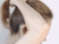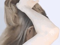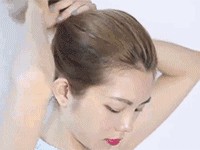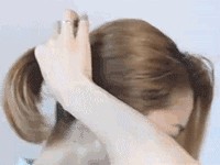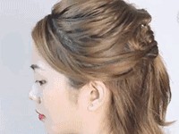 Step 1:先留一撮斜刘海,再把头发绑起来弄成低马尾,