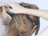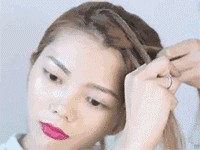 Step 4:把三股辫绕在中间的发束上,用小发夹固定。另一边重复同样的步骤。