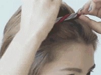 Step 4:用梳子的末端把头顶的头发挑起来,弄得蓬松一点。