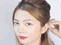 Step 2:在旁边再挑一小撮头发,扭成小辫子,绕在丸子头上。另一边重复同样的步骤。