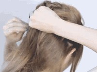 Step 2:在发束中间戳一个洞,把头发从上面绕进去再拨出来。