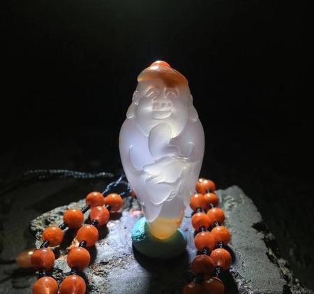 南红喜欢被把玩,在把玩中,皮肤与之摩擦是一种深度的打磨过程,南红的表面会变得更加光亮,内部的颜色也会显得更加清晰,给人亮而温润的感觉。