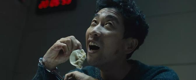 在《解救吾先生》中,王千源凶狠的盯着摄像头质疑,到凶狠挑衅吃饺子,再到饺子滑落面露迟疑,三个动作干脆连贯,一点都不拖泥带水,这场戏自然不做作!