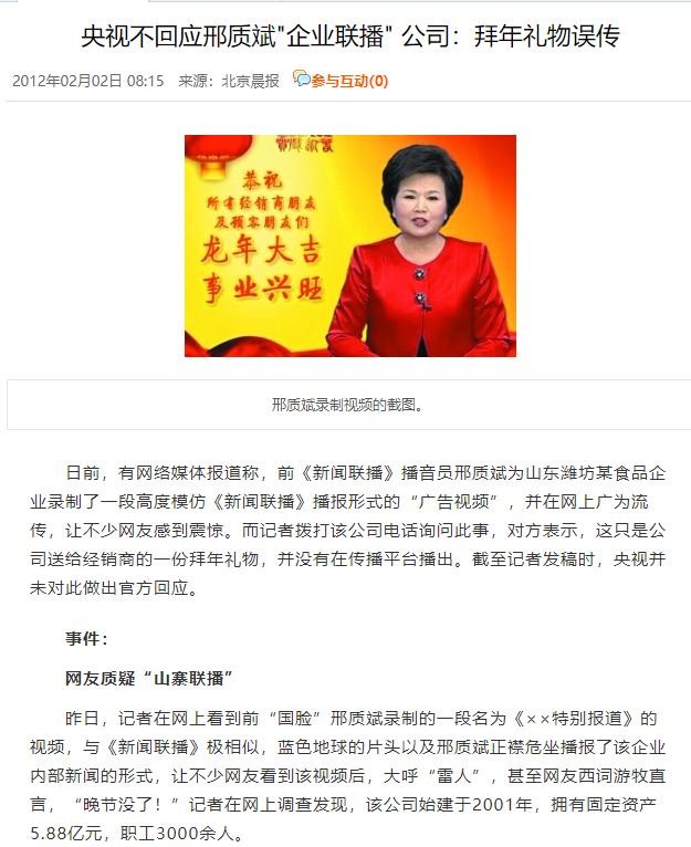 至此,事情终于真相大白,邢质斌并没有利用央视播音员的身份来为企业做宣传,一切只是一场乌龙而已。