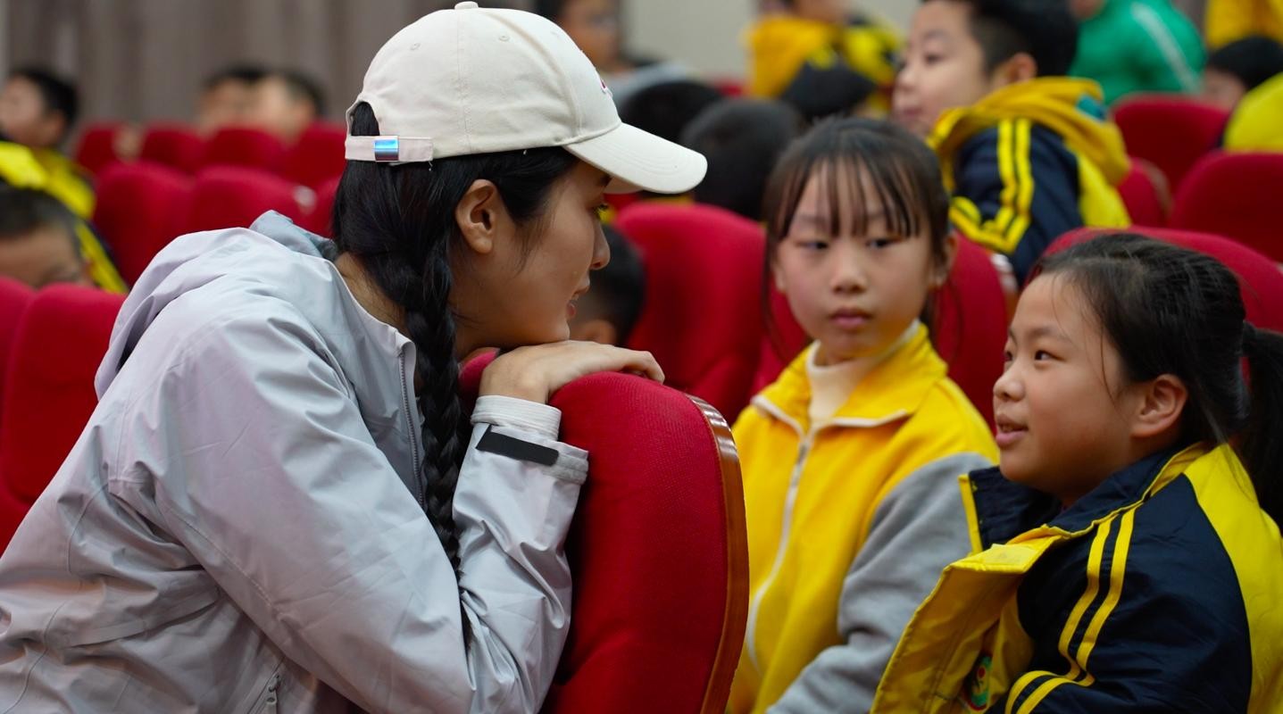 赵丽娜在一所小学和学生交流。图/九派新闻 邵骁歆
