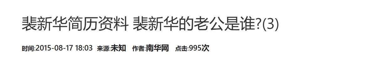 于是,这则未经证实的绯闻被推上了风口浪尖,火遍国内外。文章中的“当事人”之一裴新华被迫“二婚”,受到诸多非议。