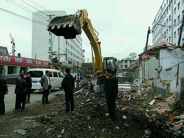 随后,已经搬走的住户的房子开始一户一户地被推倒。