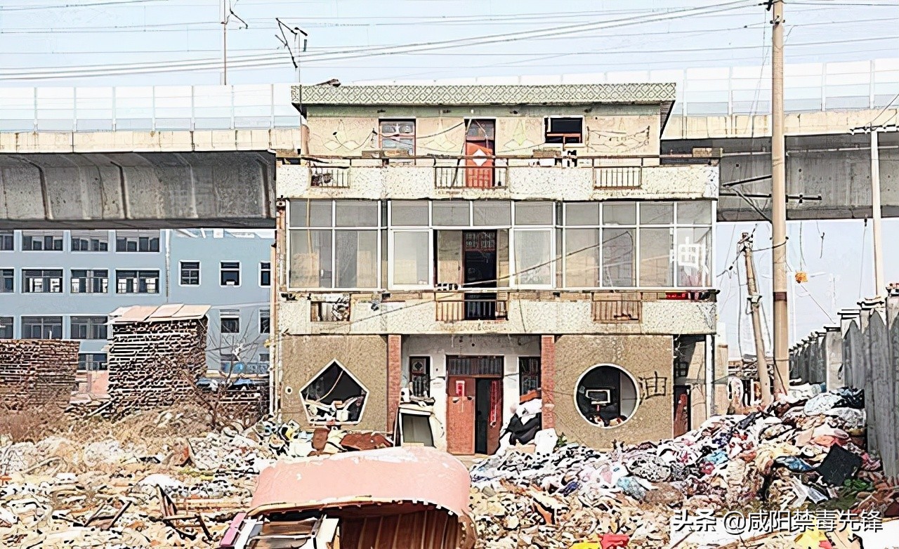 在一片荒凉的高铁路基下,居然矗立着一户人家。
