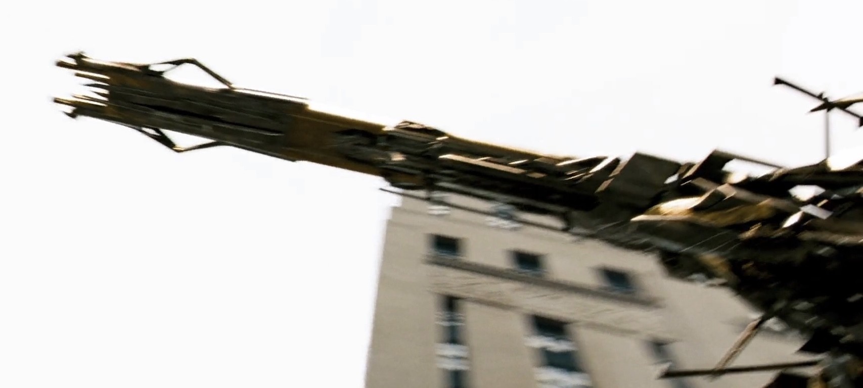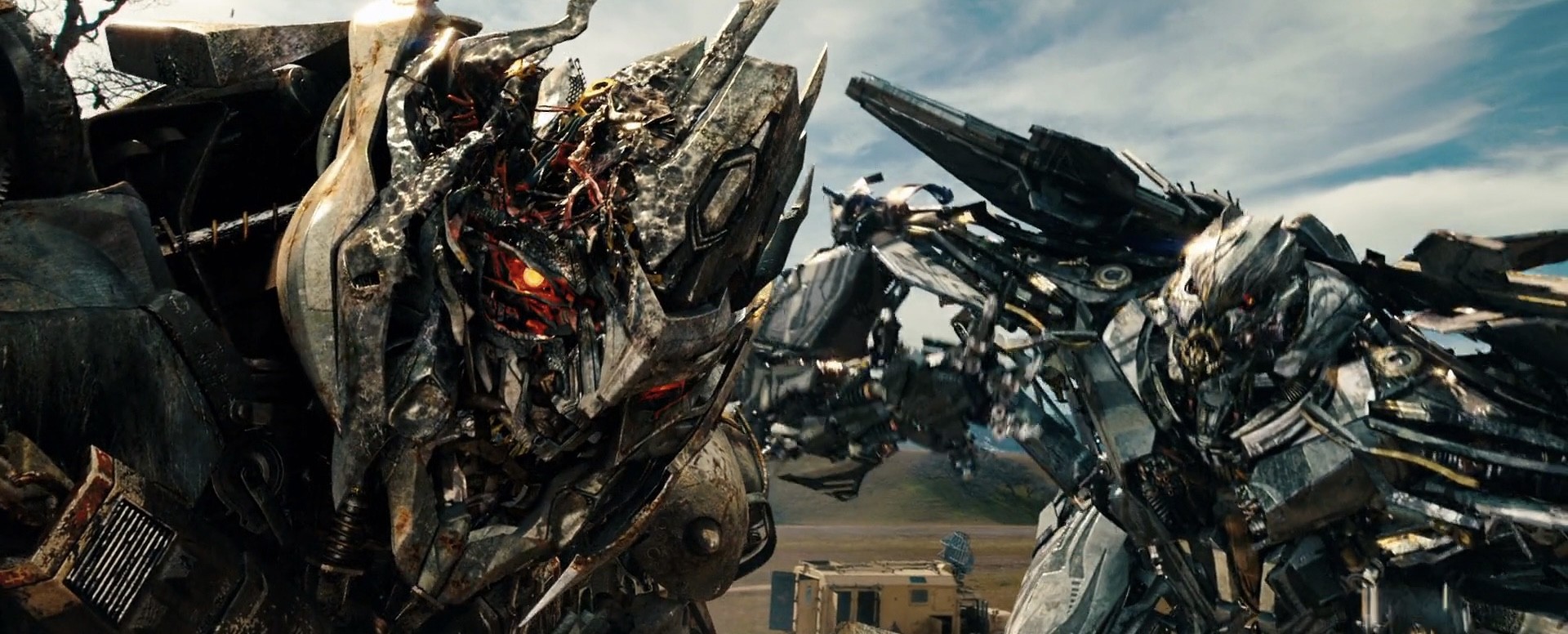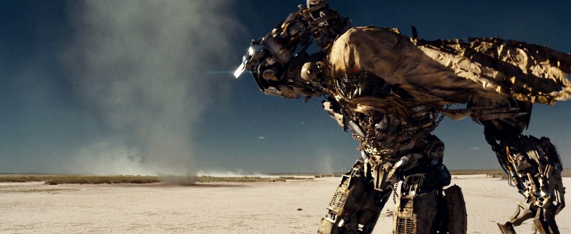 看上去非常破旧锈迹斑斑,变形之后的威震天身上也是那种生锈的金属灰黑。