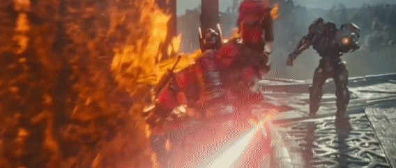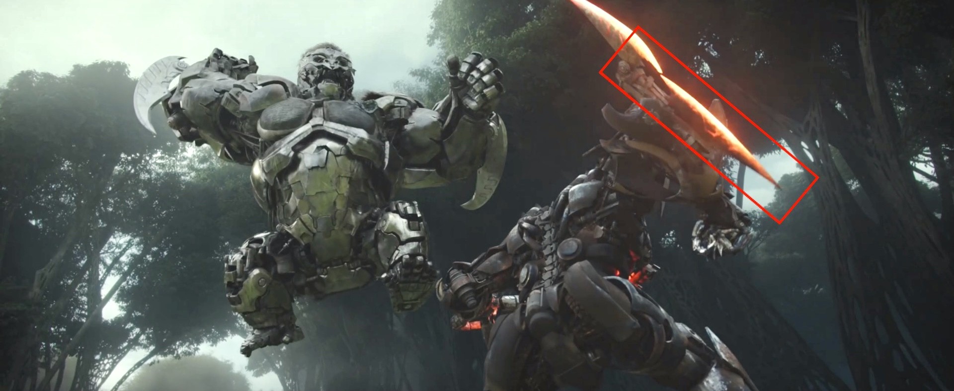 对战圣猿的时候,天灾的刃刺像极了擎天柱手上发光的能量剑。