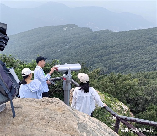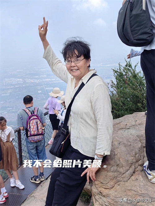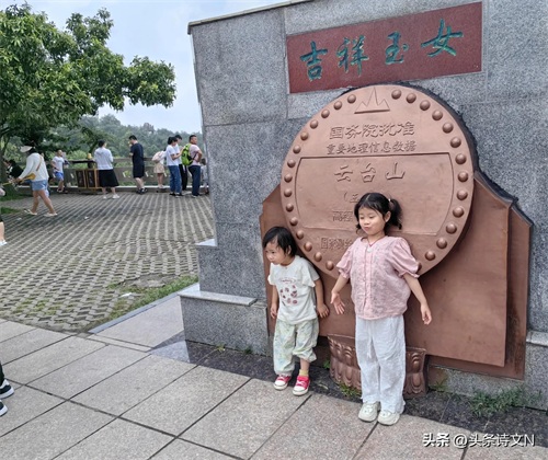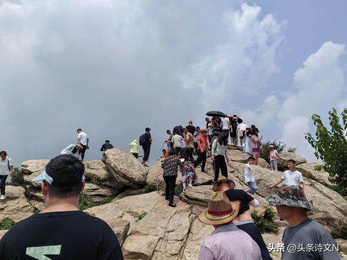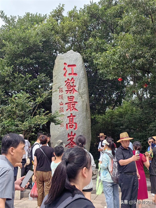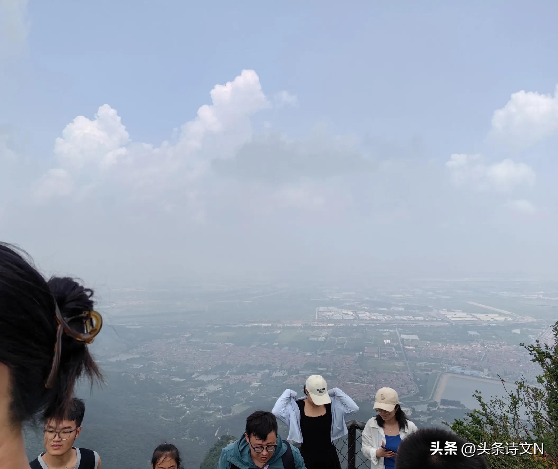 所有乘车上来的游客,都爬上了山顶,只在顶峰游览了吉祥玉女像,观景云山石堆和江苏最高峰。登高远眺,美景似入仙境一般。四周悬崖峭壁巍峨壮观,连绵的山峰层峦叠嶂。值得自豪的是,我也爬上了最高峰的云山石堆。心想年龄大了,此生再也不会来这里了,尽量少留遗憾。