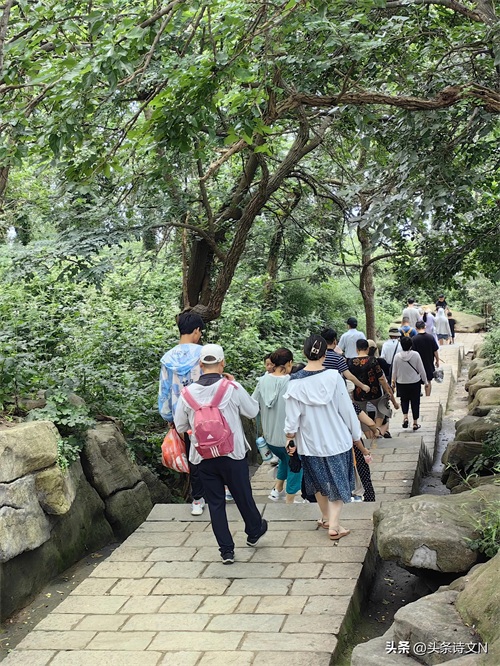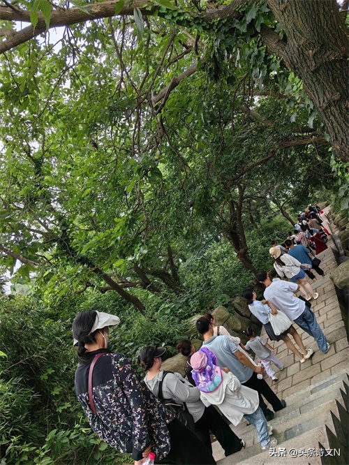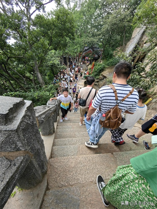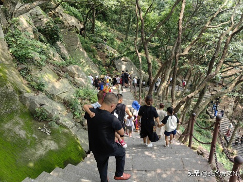 说实话我不知道,走过的这些路有多长有多远。总之我比别人还要狼狈。流的汗,把前后心的衣服都湿了。不知道什么时候把墨镜也丢了。腰腿酸疼还不说,脚脖子也疼。如果用手机来测一下步数的话,少说也有几万步了吧?我经常旅游,作为背包客,一直都觉得旅游是在苦中作乐。而在花果山的遭遇,真是先甜后苦啊,让人越来越乐不起来。请仔细看看照片,游客们都在乐了吗?不少游客抱怨,好山好水好地方被糟蹋了。我更多觉得在管理上服务上,需要改进加强。管理者应该想到,这条路不是那么好走吧?如果说观光车是因为:山高路陡,转弯多,安全起见不能停车。是否能再想一些别的方法呢?峨眉山的滑杆,人力车,摩托车,三轮车,可不可以呢?滑索和缆车能不能分段进行呢?目前载客的观光车,是否可以再增加几个停车点呢?游客多的时候困难多一些。不在双休日和节假日游客少的时候,能否做一些改进?为了更好点服务游客,真的是一点都不能改进吗?
