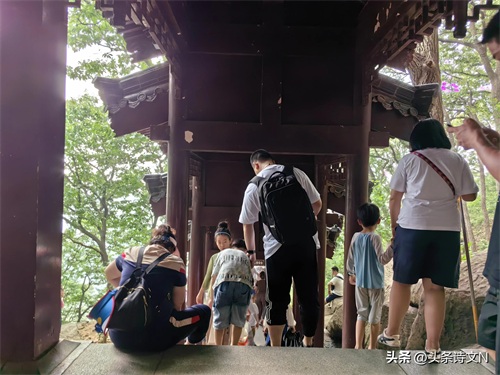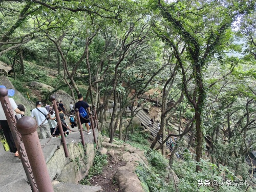 实话实说,只有极少的年轻游客,他们就在山顶的迎曙亭旁边,直接坐了滑索,飞身而下了。朋友们猜一猜,他们是不是觉得花果山太好玩了,以后再多来玩几次呗。老年人和很多外地游客,却不具备这样的资源啊。我犹豫了一下,还是选择步行下山。朋友们想一想,花果山的猴子和水帘洞,谁也不能放弃吧。