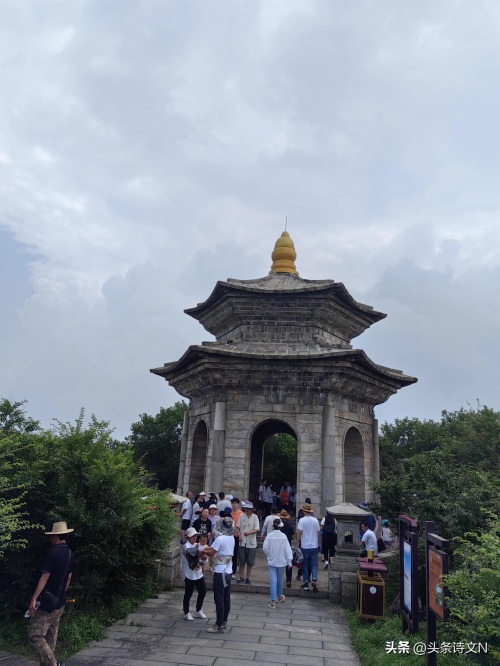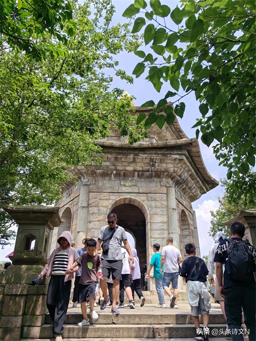 乘车上山很快很轻松。一路上看到一些年轻人驴友步行爬山。真心羡慕他们的好体力。花果山景区,山脉相连地域辽阔。花果山主峰是玉女峰,海拔624.4米,为云台山的主峰。景区内的地貌由红色花岗岩构成,山体陡峭,形状奇特,有许多像动物和神话人物的形象,例如孙悟空,八戒,唐僧等等。我们坐在车上看到一些景点极速而过了。司机说只在高峰停一次车。我们下车后开始爬山。途经迎曙亭。她是在明朝海曙楼遗址上重建的,目前是国内最大的全岩石结构的亭子。可见连云港是多么重视这座花果山啊。倾尽人力物力,打造了如此美景。这里无疑是清晨迎接曙光,独一无二的选择。