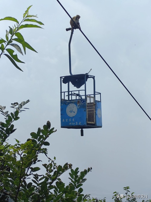 顽皮猴子还爬上了缆车。看来这些缆车早已经不再运营状态了。我实在感觉累的时候就坐下来休息,这一路不知道休息几次了。艳阳高照,温度非常高。幸亏备足了凉茶,也可以买路边的冷饮雪糕。虽然一个冰棍要卖5元,大人和小孩还是争相购买。好不容易走到了一个有观光车的地方。 在这里花25元可以直接下山到山门口。细心的朋友请看照片,因为疲惫不堪,我去问了情况。两位工作人员正在交头接耳的聊天。他们回答我从这里下山到水帘洞并不停车。我问这里不是玉女峰,为什么车票还卖25元呢?回答说,这是规定的。无语。这里空停了几辆车,等待着拉不上游客。因为根本没有人买票。朋友,如果是你,已经接近水帘洞了,难道还要在这里坐车下山吗?