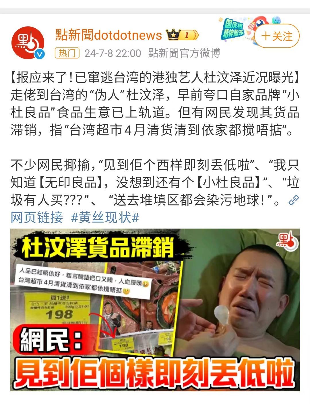 之后杜汶泽便开始一系列谜之操作,导致他的事业受到影响,在被内陆和港圈抵制之后,两人便来到了中国台湾省。
