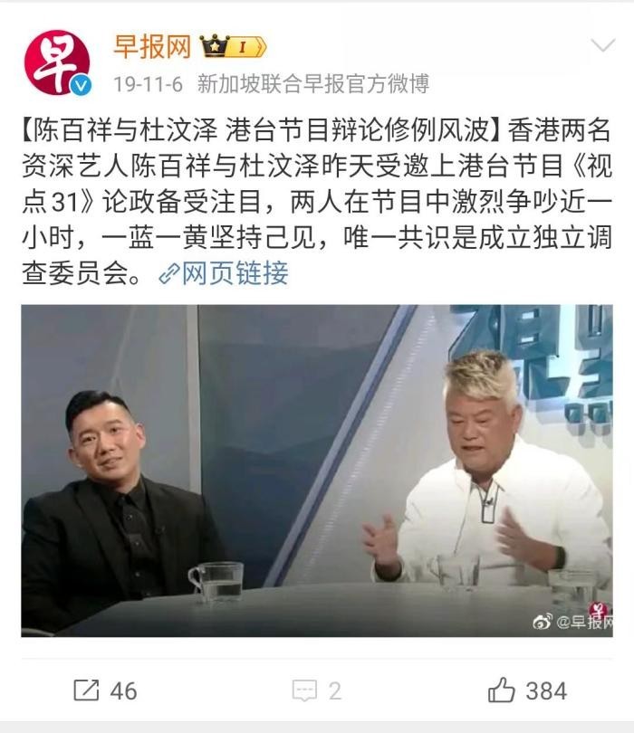 而同样作为港星的陈百祥自然不能容忍他这样公然对自己的家乡进行造谣,于是便开始据理力争的和他辩解,而杜汶泽非但没有选择沉默,反而用很大声的语气和陈百祥狡辩。