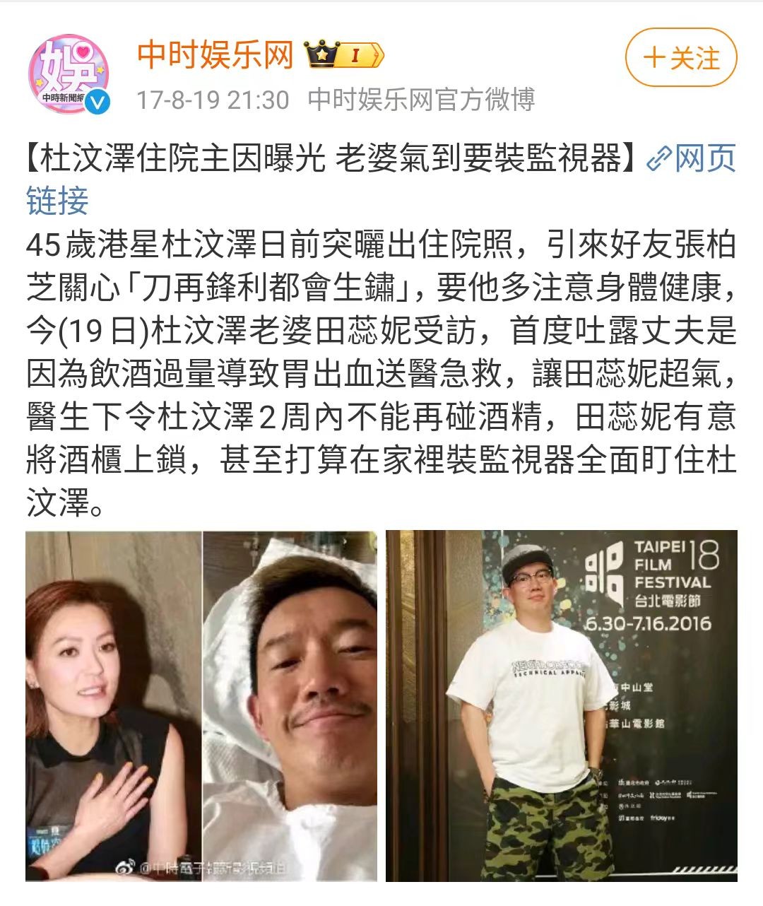 而在之后田蕊妮接受采访的时候曾说过,他的这个病是因为他长期饮酒造成的,并且在住院的那段时间中,她为了更方便照顾杜汶泽,还差点在家中各个角落安上监视器。
