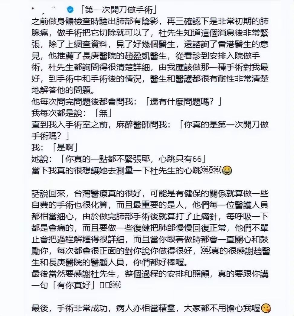 继2012年杜汶泽被曝出住院消息后,如今他的妻子也被曝出了得癌症在台北做手术的消息。