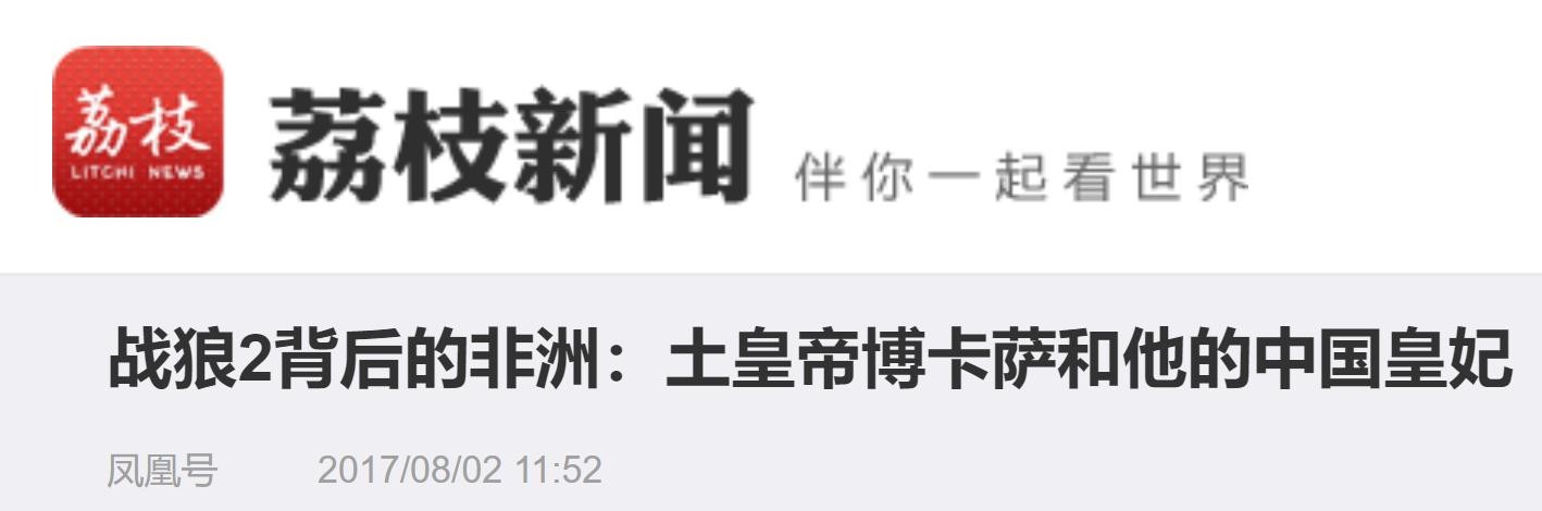 荔枝新闻 2017/08/02 11:52报道:战狼2背后的非洲:土皇帝博卡萨和他的中国皇妃