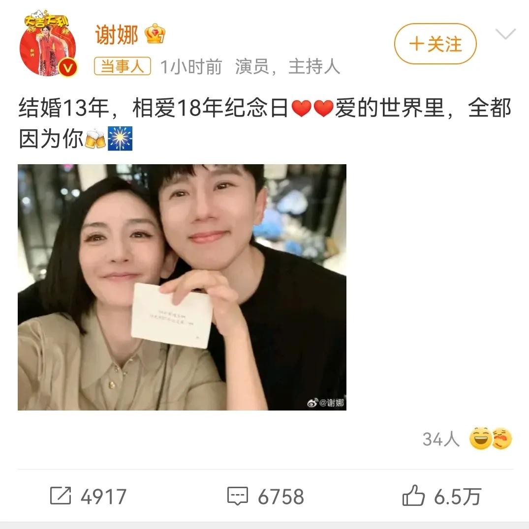 张杰谢娜晒合照庆结婚十三周年,相爱十八年情比金坚