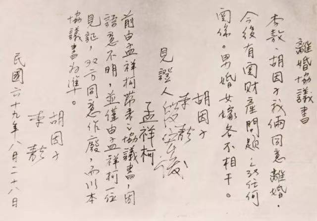 李敖与胡因梦的离婚协议