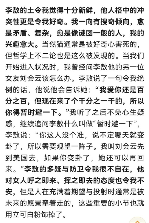 胡因梦后来这样评价李敖:他只想着怎么去征服女人,因此在他的心中,女性是一个被物化的战利品。