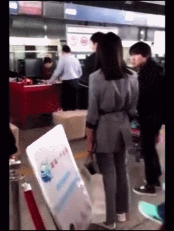 走进机场后,宋茜跟工作人员正常排队买票,一阵热聊中。