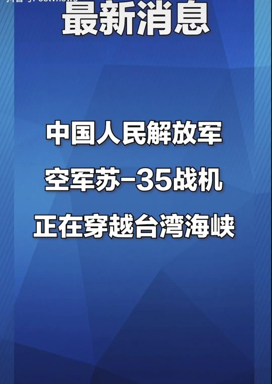 大家有没有在佩洛西降落台北的同时间段看到中国的新闻报道,《中国人民解放军空军苏—35战机正在穿越台湾海峡》