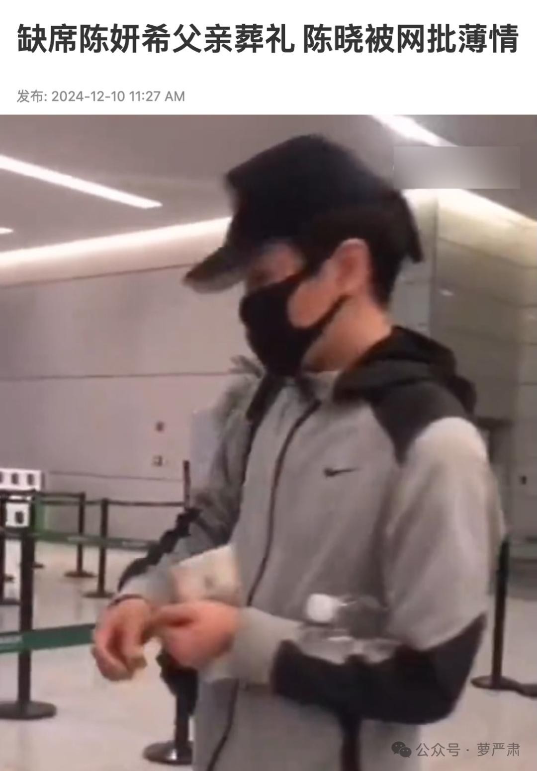 去年(2024年)12月,陈妍希父亲去世,陈晓没有任何表示,也没有去台奔丧,照常去成都工作。