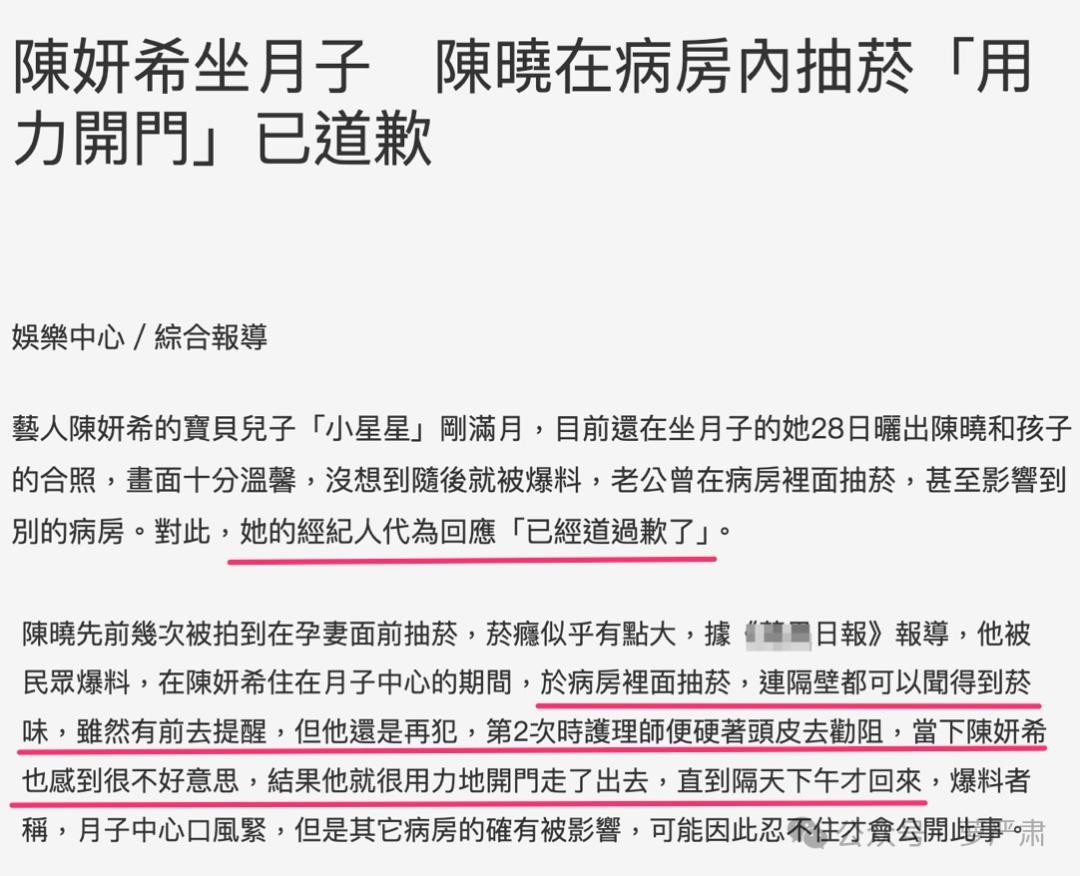 至于陈妍希坐月子的时候陈晓在月子中心抽烟,最后还是陈妍希经纪人出来回应说道过歉了,那一定是陈晓有什么说不出口的委屈!