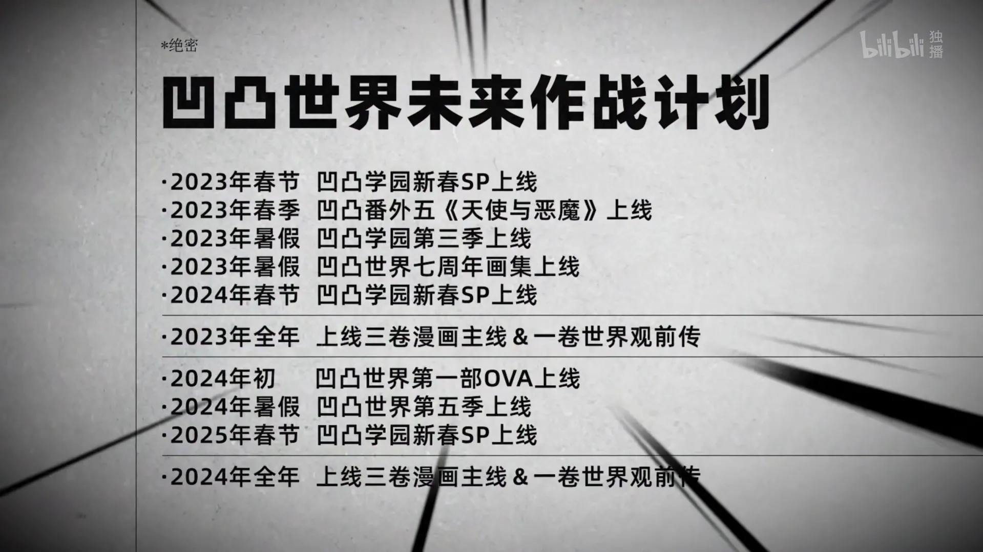 最后在为喜欢凹凸的小伙伴送上”冰冷“的消息:《凹凸世界》第五季将会在2024年暑假开播!!!(七社:惊不惊喜,意不意外)在送上一个”慰藉奖“凹凸官方将在今年春节推出凹凸外番《天使与恶魔》,各位尽情期待吧!