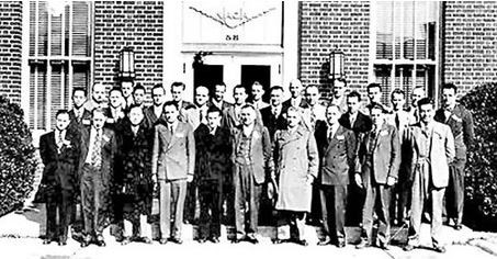 这是一张珍贵的照片。1947年2月3日,以美国航空事业奠基人冯·卡门(一排左七)为核心的美国国家航空