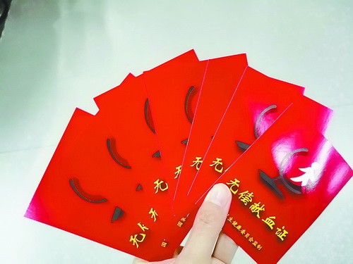 厦门晚报讯(记者 匡惟 通讯员 王宇征)无偿献血的证书从原先的小本子改成了一张卡。昨日起,厦门市中心血站启用了全国统一制作的新版献血证,献血者每次献血可领一张。