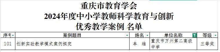 重庆市教育学会2024年度中小学教师科学教育与创新优秀教学案例评选
