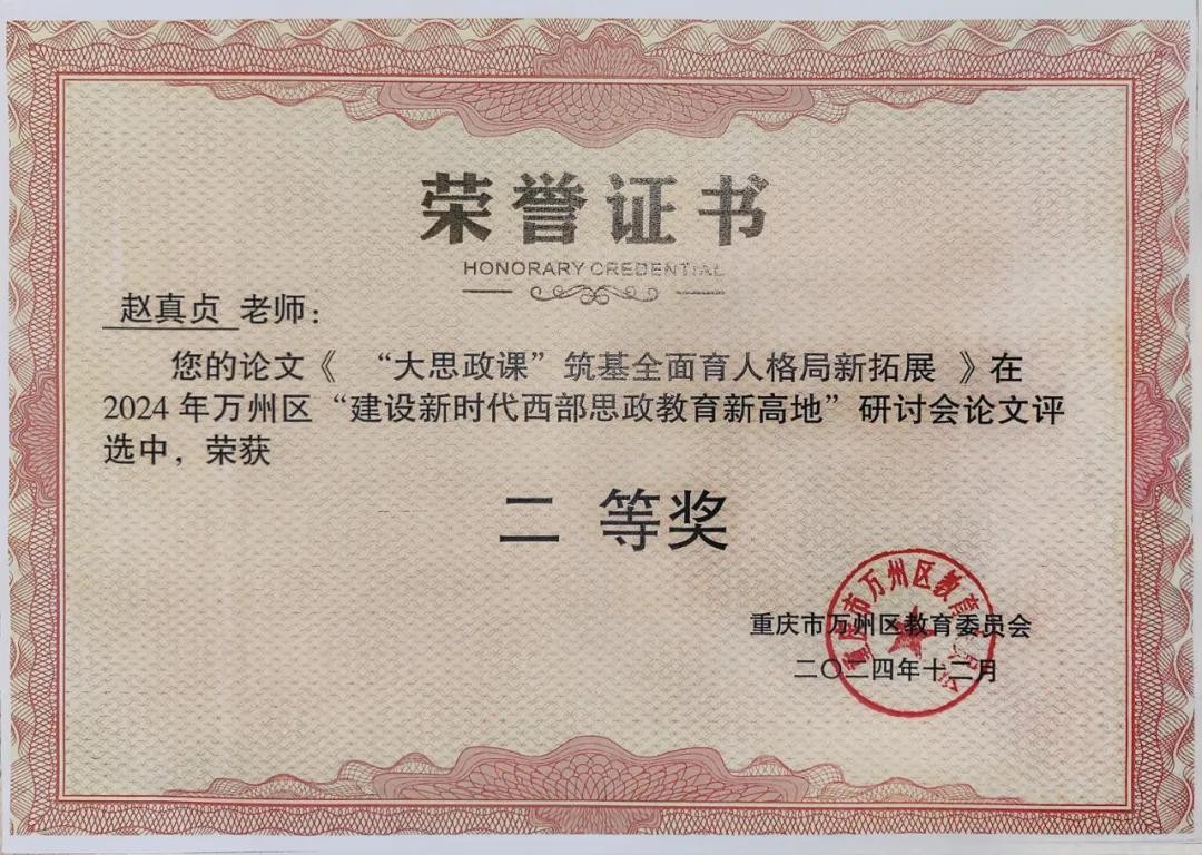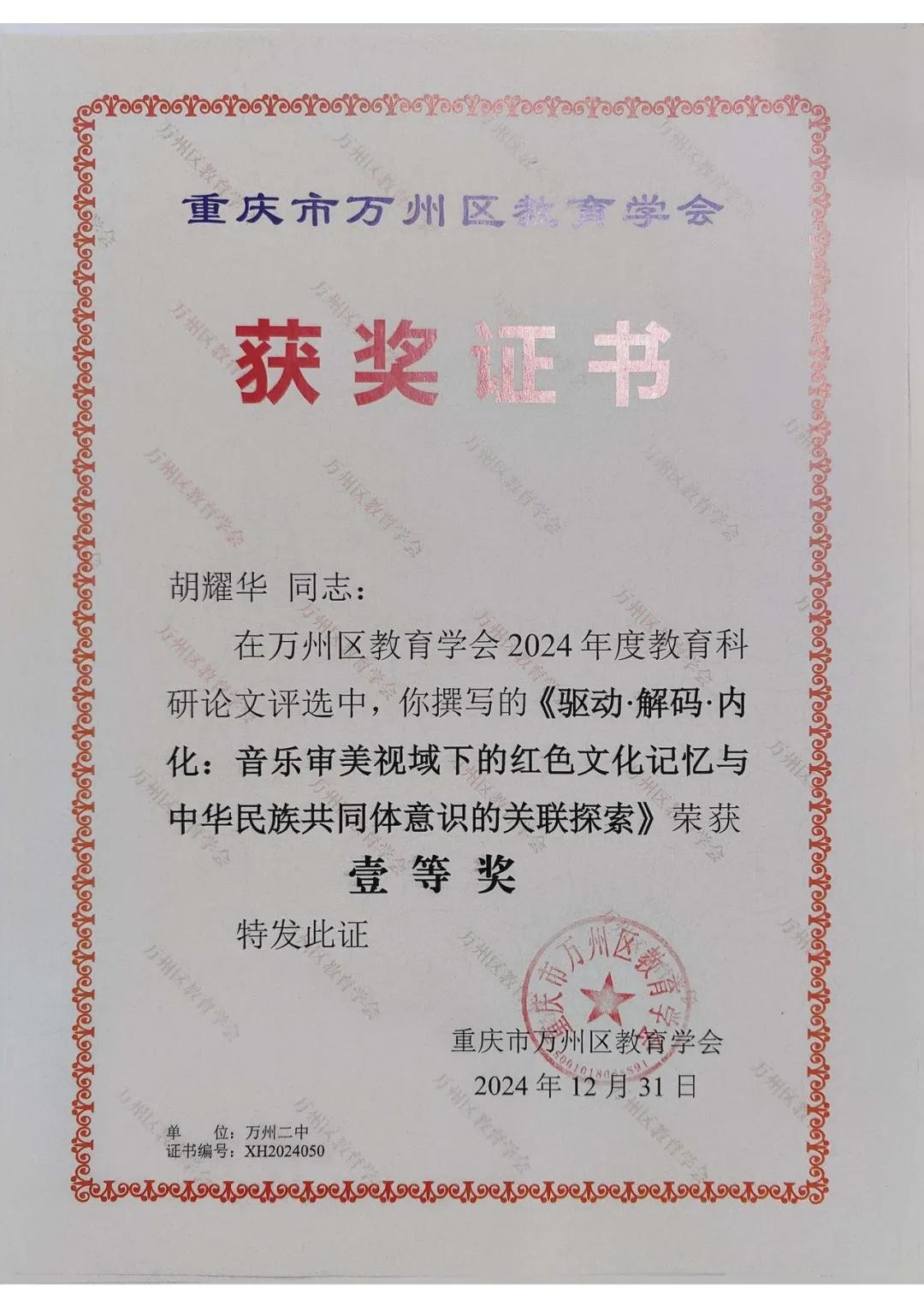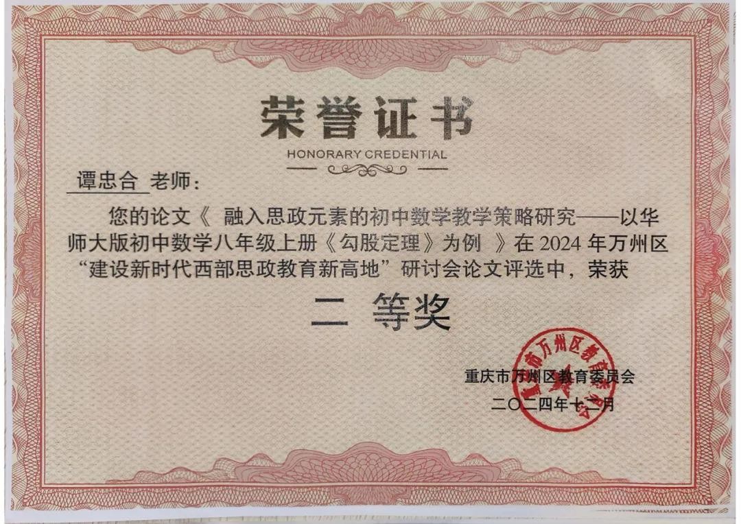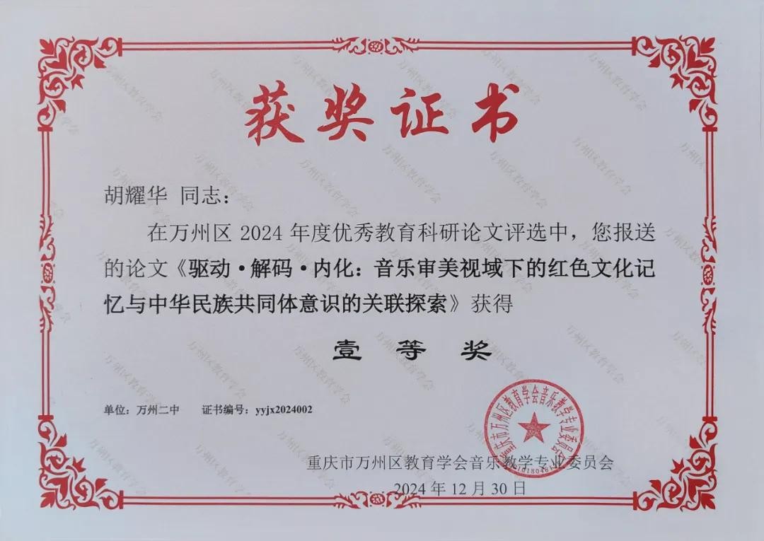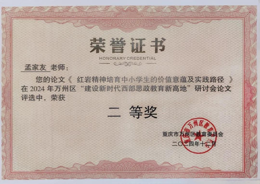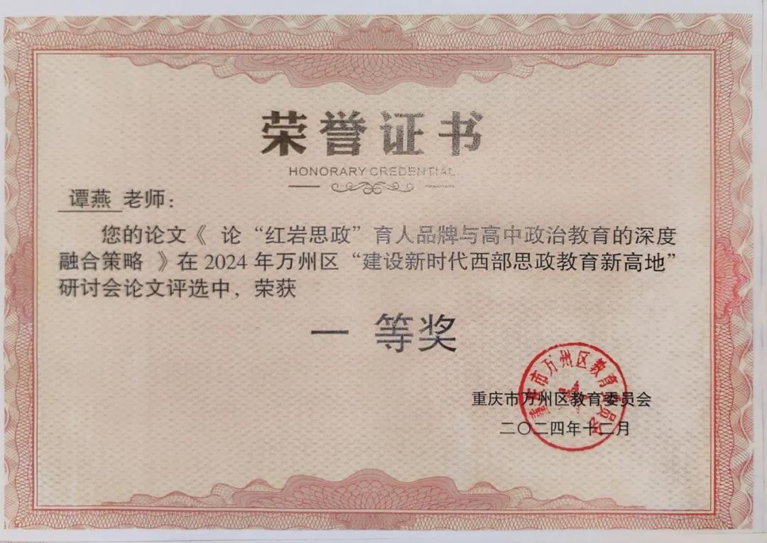 万州区第29个教研月活动表现突出集体及个人评选活动中,向覃、邵欣老师获评“表现突出个人”称号。