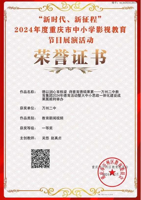瞩目成绩的取得,是万州二中师生共同努力的结果,也是学校长期坚持教育科研和科创教育结出的硕果。展望未来,万州二中将继续秉承创新精神,加强教育科研和科创教育的力度,培养更多具有创新精神和实践能力的人才,为学校的持续发展注入新的活力,期待在未来的比赛中再创佳绩,续写辉煌。