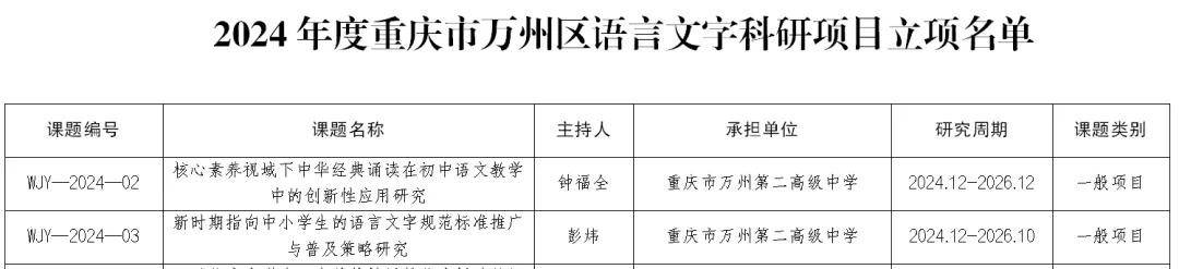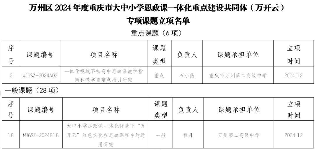 万州区2024年度重庆市大中小学思政课一体化专项课题